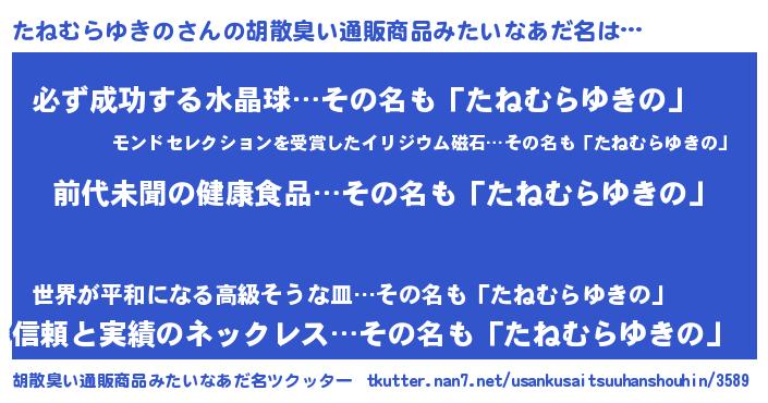 | ヘコむあだ名 | 『たねむらゆきの(爆)』『たねふぇ~』 |