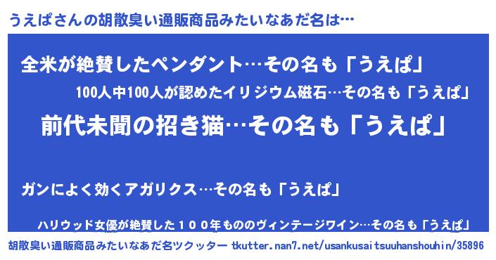 | 意味不明あだ名 | 『永久保存うえぱ』『自称うえぱ』 |