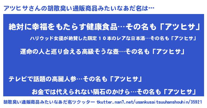 | 欧米人風あだ名 | 『アツヒサクリステル』 |