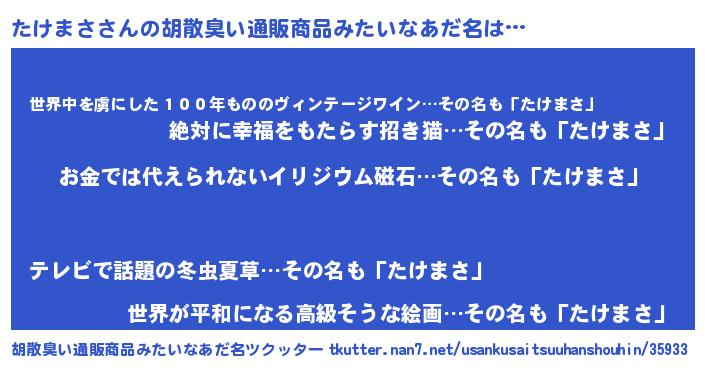 | ヒーロー風カッコイイあだ名 | 『慈愛の使者たけまさ』『仮面タケダー』 |