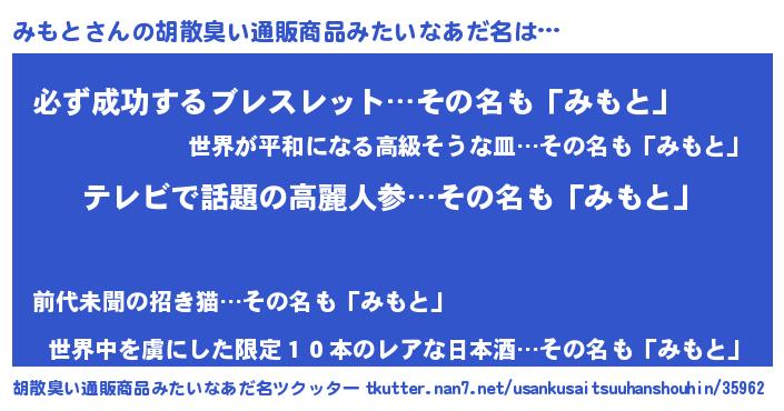 | ヘコむあだ名 | 『みもにー』『つくし』『みも太郎』 |