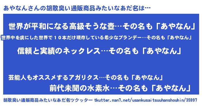 | ヘコむあだ名 | 『あやっ子』『豆乳』『あやもー』 |