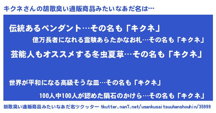 | 意味不明あだ名 | 『自称キクネ』『もやし科キクネ属』 |