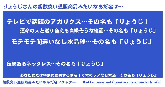 | 男性向けラノベタイトル風あだ名 | 『りょうじの憂鬱』『リョウジスレイヤー』 |