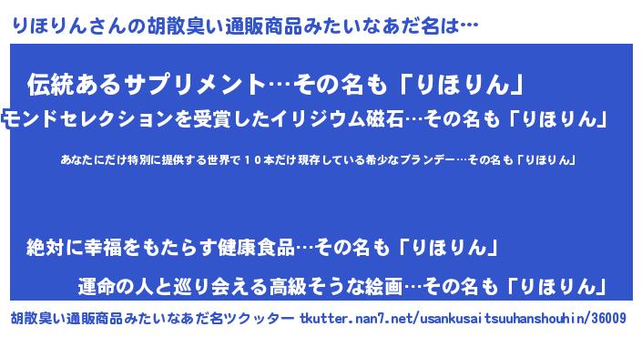 | 意味不明あだ名 | 『住所不定無職りほりん(91歳)』 |