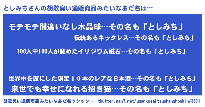 | ヘコむあだ名 | 『としにゅー』『としみち(笑)』 |