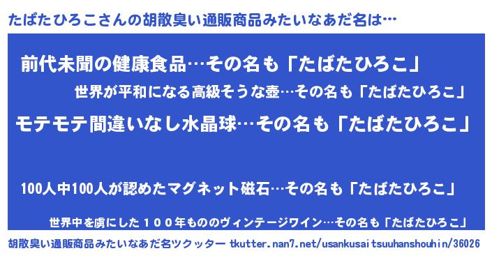 | ヘコむあだ名 | 『たばにゅー』『たばたひろこ(爆)』 |