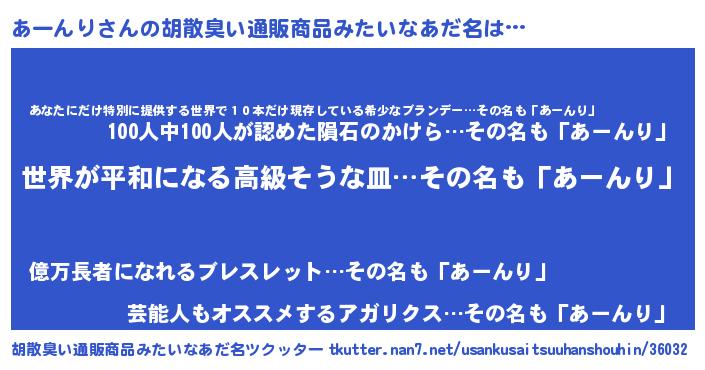 | 意味不明あだ名 | 『あーんりフォーエバー』『自称あーんり』 |