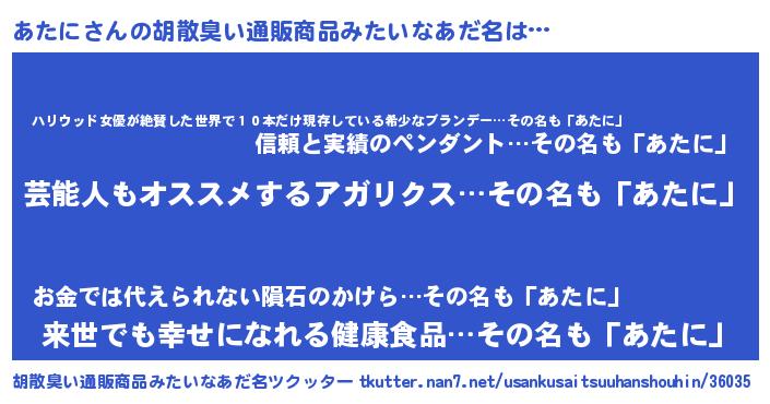 | 欧米人風あだ名 | 『トリンドルあたに』『ダレノガレあたに』 |