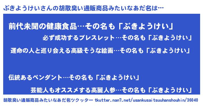 | 意味不明あだ名 | 『ぶきようけいフォーエバー』 |