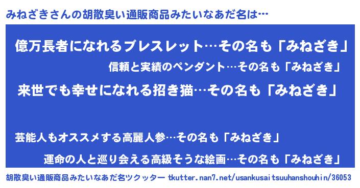 | 意味不明あだ名 | 『永久保存みねざき』『ペロリンみねざき』 |