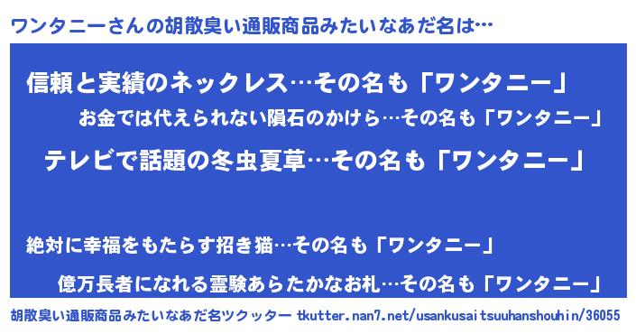 | 意味不明あだ名 | 『自称ワンタニー』『ペロリンワンタニー』 |