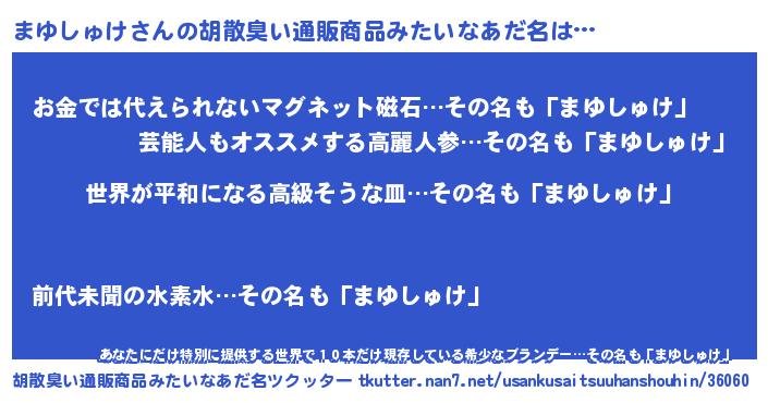 | 欧米人風あだ名 | 『まゆしゅけクリステル』 |