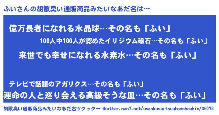 | ヘコむあだ名 | 『ふい(遠い目)』『ふいっふぃ~』 |