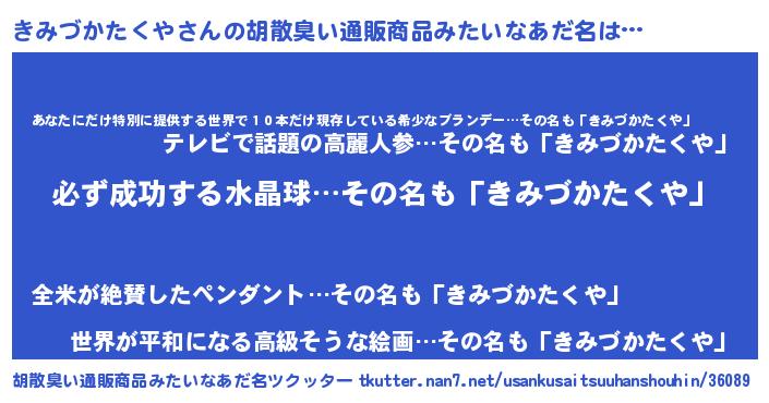| 男性向けラノベタイトル風あだ名 | 『きみづかたくやの憂鬱』 |