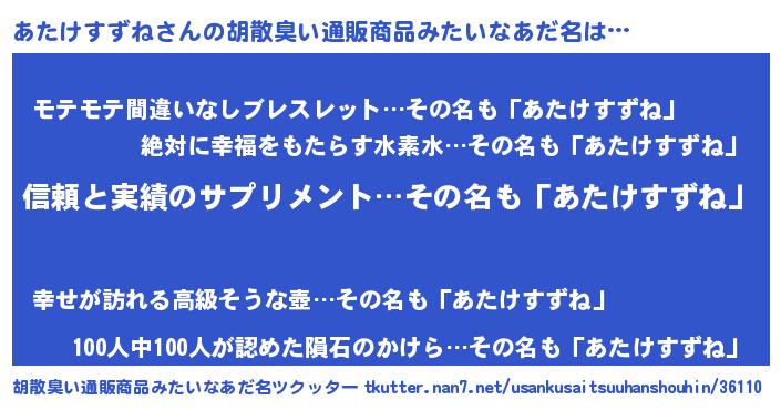 | 意味不明あだ名 | 『とにかく怪しいあたけすずね』 |