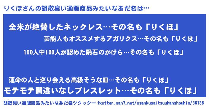 | ヘコむあだ名 | 『りくっぺ』『りくっふぃ~』 |