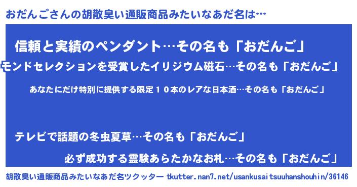 | 男性向けラノベタイトル風あだ名 | 『この素晴らしい世界におだんごを!』 |
