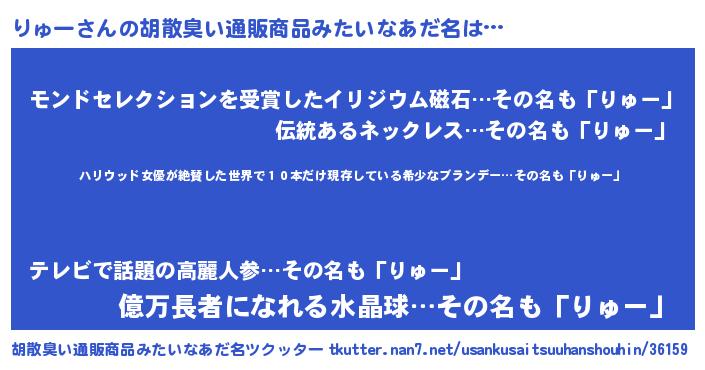 | 意味不明あだ名 | 『住所不定無職りゅー(89歳)』『自称りゅー』 |