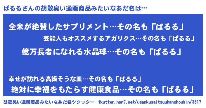 | 意味不明あだ名 | 『ペロリンぱるる』『ニラ科ぱるる属』 |