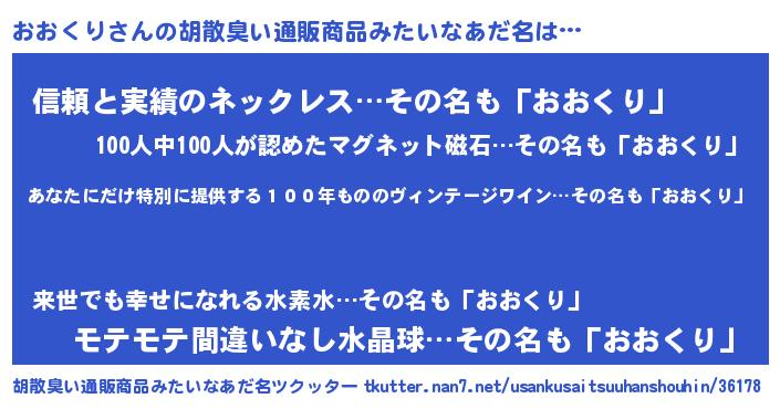 | 意味不明あだ名 | 『住所不定無職おおくり(10歳)』 |