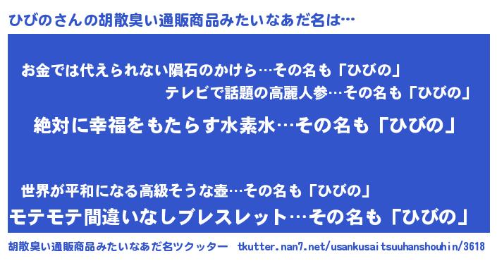 | ヘコむあだ名 | 『ひびの(遠い目)』『ひびもー』 |