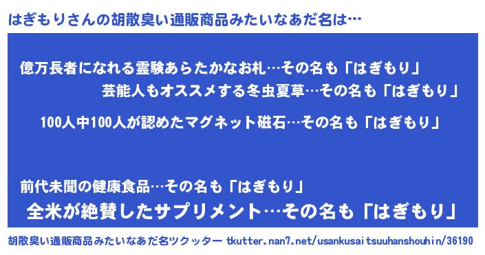 | ヒーロー風カッコイイあだ名 | 『友情の使者はぎもり』『天弓騎士ハギ』 |
