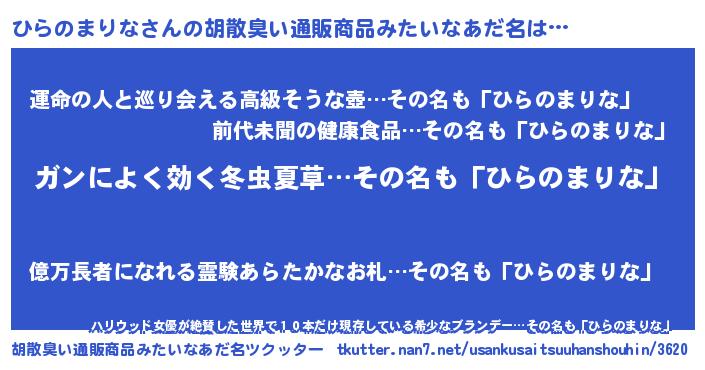 | 意味不明あだ名 | 『自称ひらのまりな』 |