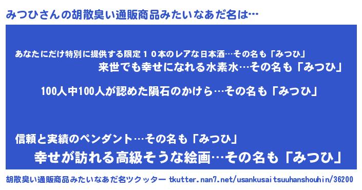 | ヒーロー風カッコイイあだ名 | 『友情の使者みつひ』『仮面ミツダー』 |