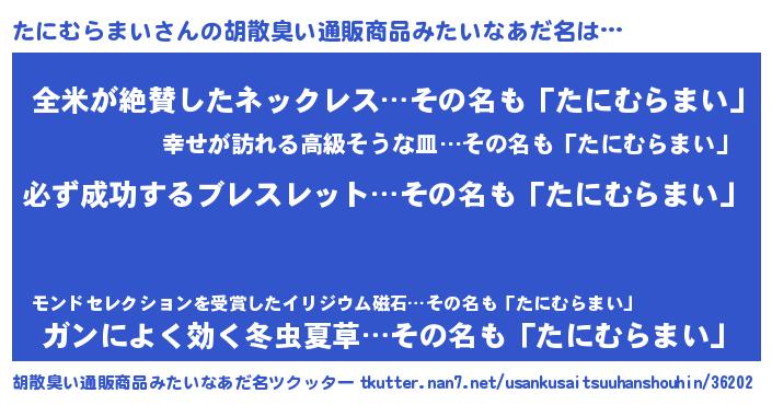 たにむらまいさんの胡散臭い通販商品みたいなあだ名をツクッター!