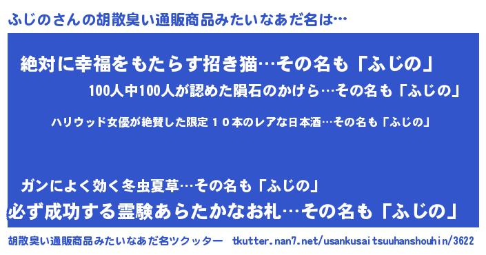 | ヘコむあだ名 | 『ふじの(苦笑)』『ふじにー』『豆乳』 |