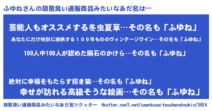 | 意味不明あだ名 | 『めかぶ科ふゆね属』『自称ふゆね』 |