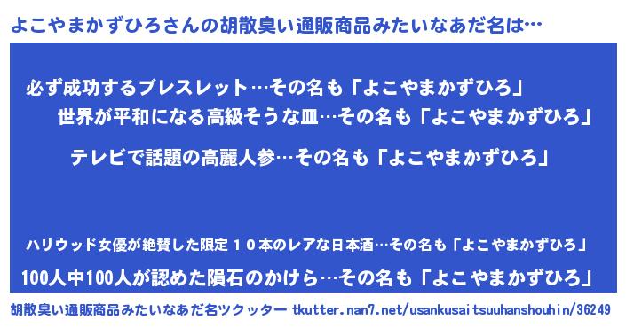 | 肩書あだ名 | 『よこやまかずひろ閣下』 |