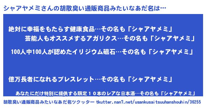 | 可愛いあだ名 | 『シャちゅっちゅ』『シャアヤメミママ』 |