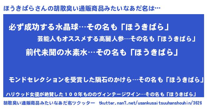 | 恥ずかしいあだ名 | 『ほうちん』『プリティーほうきばら』 |