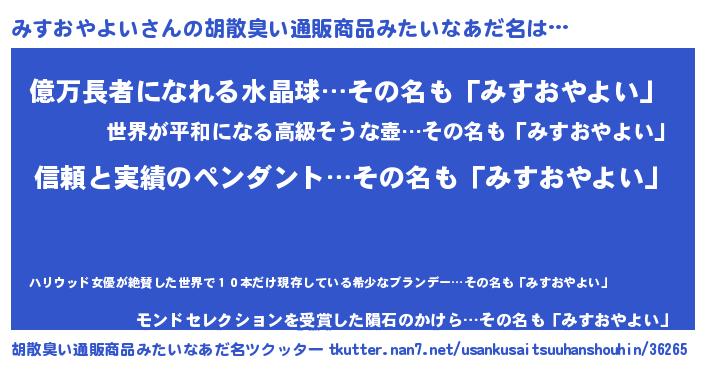 | 意味不明あだ名 | 『とにかく怪しいみすおやよい』 |