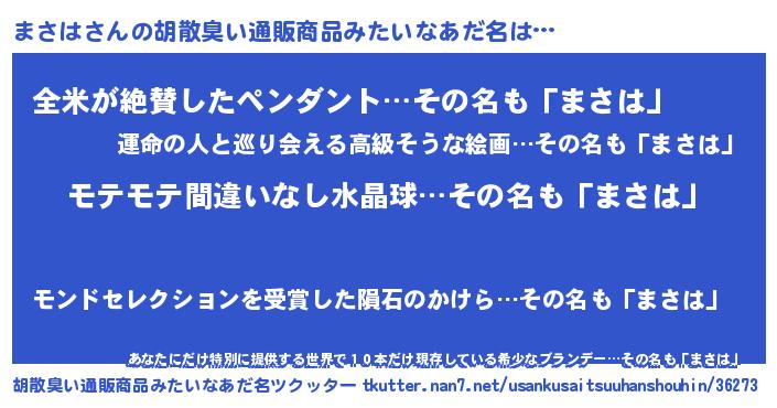 | 男性向けラノベタイトル風あだ名 | 『まさはの憂鬱』『はたらくまさはさま!』 |