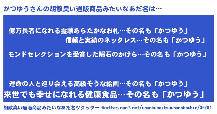 | ヒーロー風カッコイイあだ名 | 『天空の使者かつゆう』『ネオカツユウ』 |
