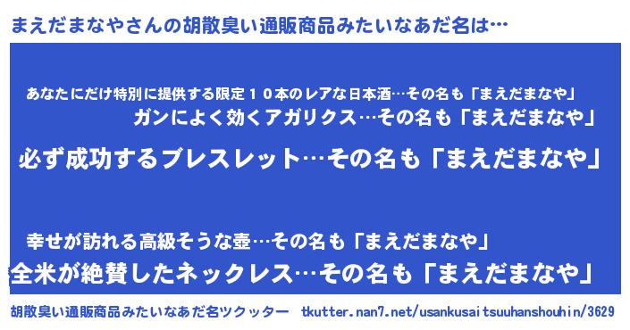 | 肩書あだ名 | 『まえだまなや社長』『まえだまなや艦長』 |