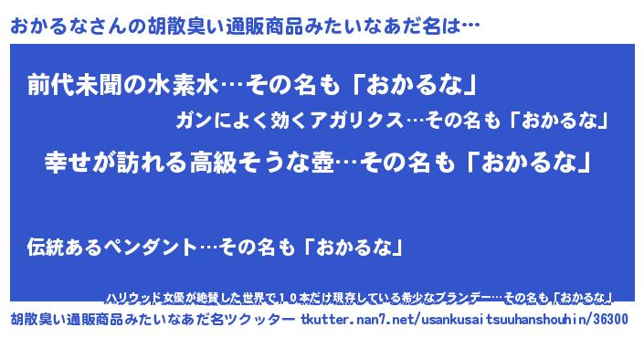 | 男性向けラノベタイトル風あだ名 | 『はたらくおかるなさま!』 |