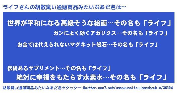 | ヘコむあだ名 | 『なまこ酢』『ライフ(爆)』『ライお』 |