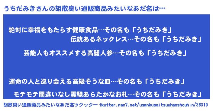 | 意味不明あだ名 | 『自称うちだみき』『永久保存うちだみき』 |