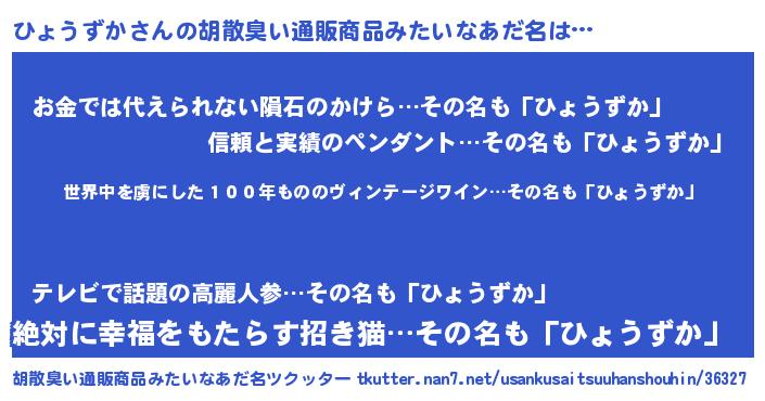 | ヒーロー風カッコイイあだ名 | 『仮面ヒョダー』『愛の使者ひょうずか』 |
