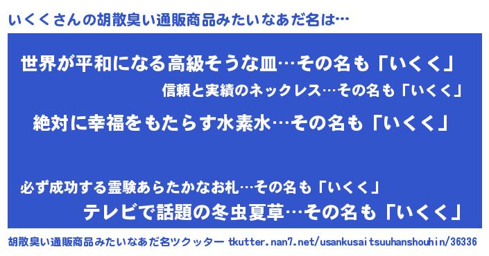| 男性向けラノベタイトル風あだ名 | 『いくくという概念が存在しない退屈な世界 』 |