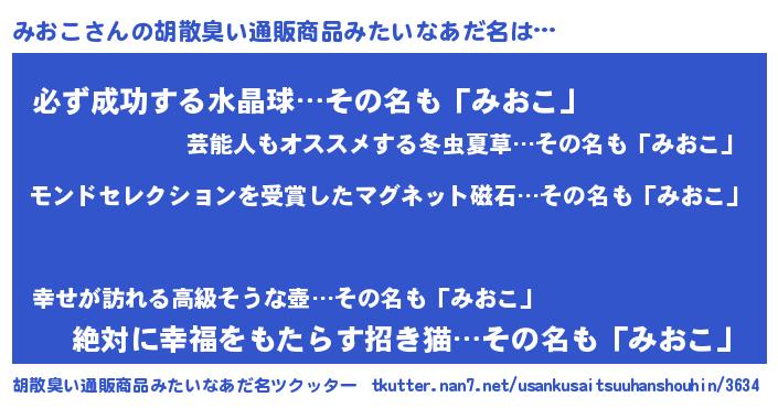 | ヘコむあだ名 | 『みおにー』『みおこ(笑)』『つくし』 |