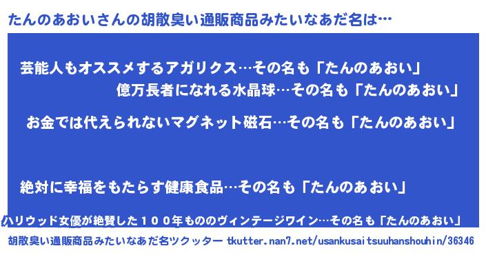 | ヒーロー風カッコイイあだ名 | 『慈愛の使者たんのあおい』 |