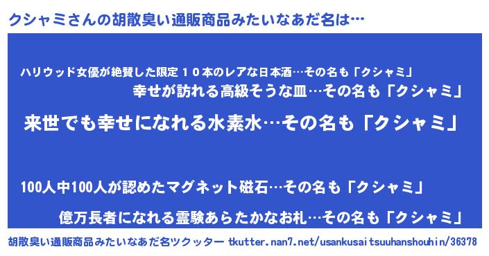| 恥ずかしいあだ名 | 『クシちん』『プリティークシャミ』 |