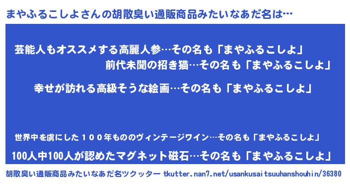 | 意味不明あだ名 | 『まやふるこしよフォーエバー』 |