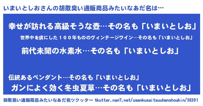 | ヘコむあだ名 | 『いまいとしお(苦笑)』『レバニラ』 |