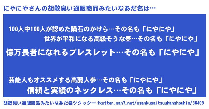| ツイッター | にやにやさんのツイッターID『namakemono_man』 |